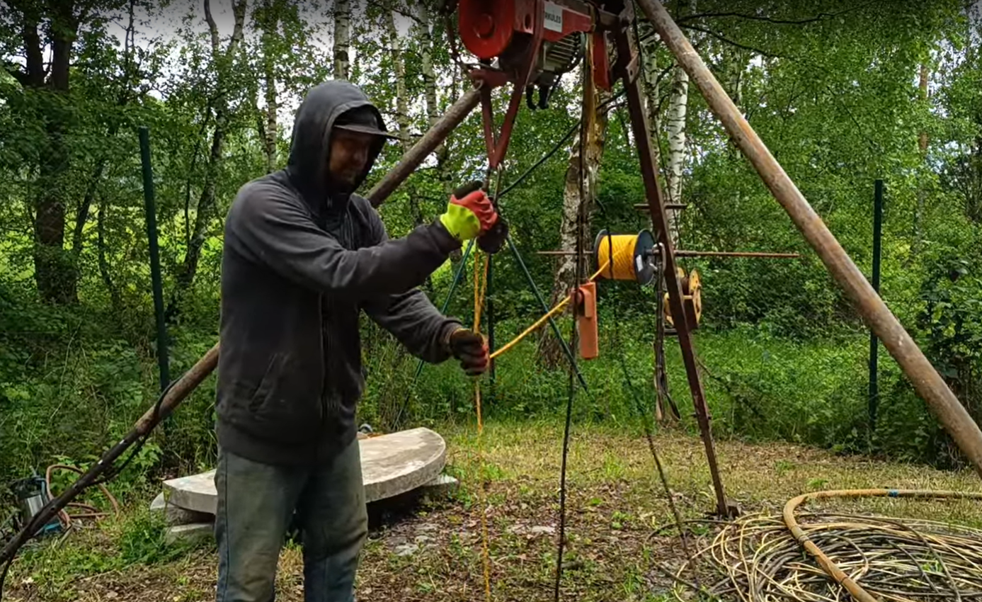Rekonstrukce a čištění studní v Národním parku Šumava, studny slouží jako zdroje vody pro strážce parku.